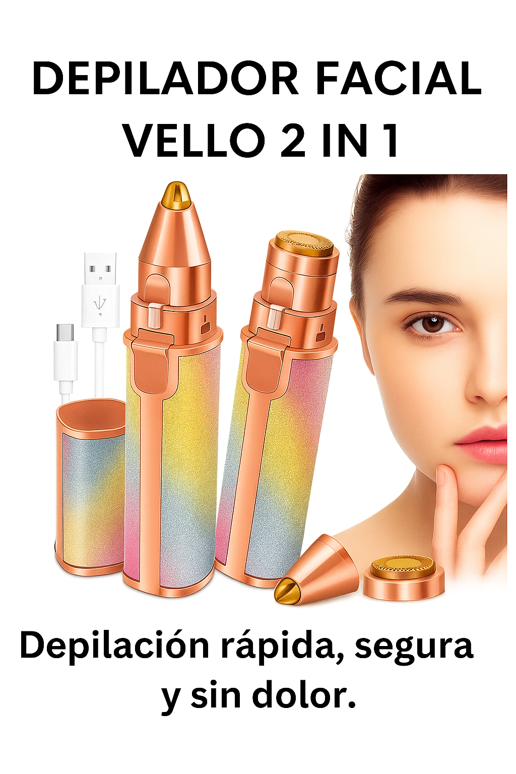 Depilador Facial Vello 2 En 1: Depilación rápida, segura y sin dolor, facil de usar y transportar